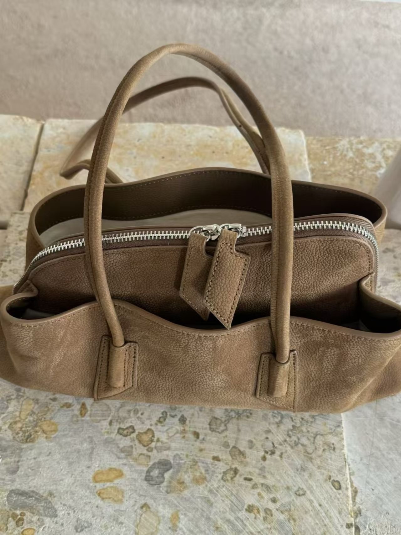■特徴 ・三仕切りデザイン:内部が三つに分かれているため、収納がしやすく、必要なアイテムもすぐ取り出せます。 ・贅沢な牛革:耐久性が高く、使うほどに味わいが増す高品質の牛革を使用しています。 ・肩掛けスタイル:肩にかけて使えるため、両手が空いてアクティブに動けるのが魅力です。